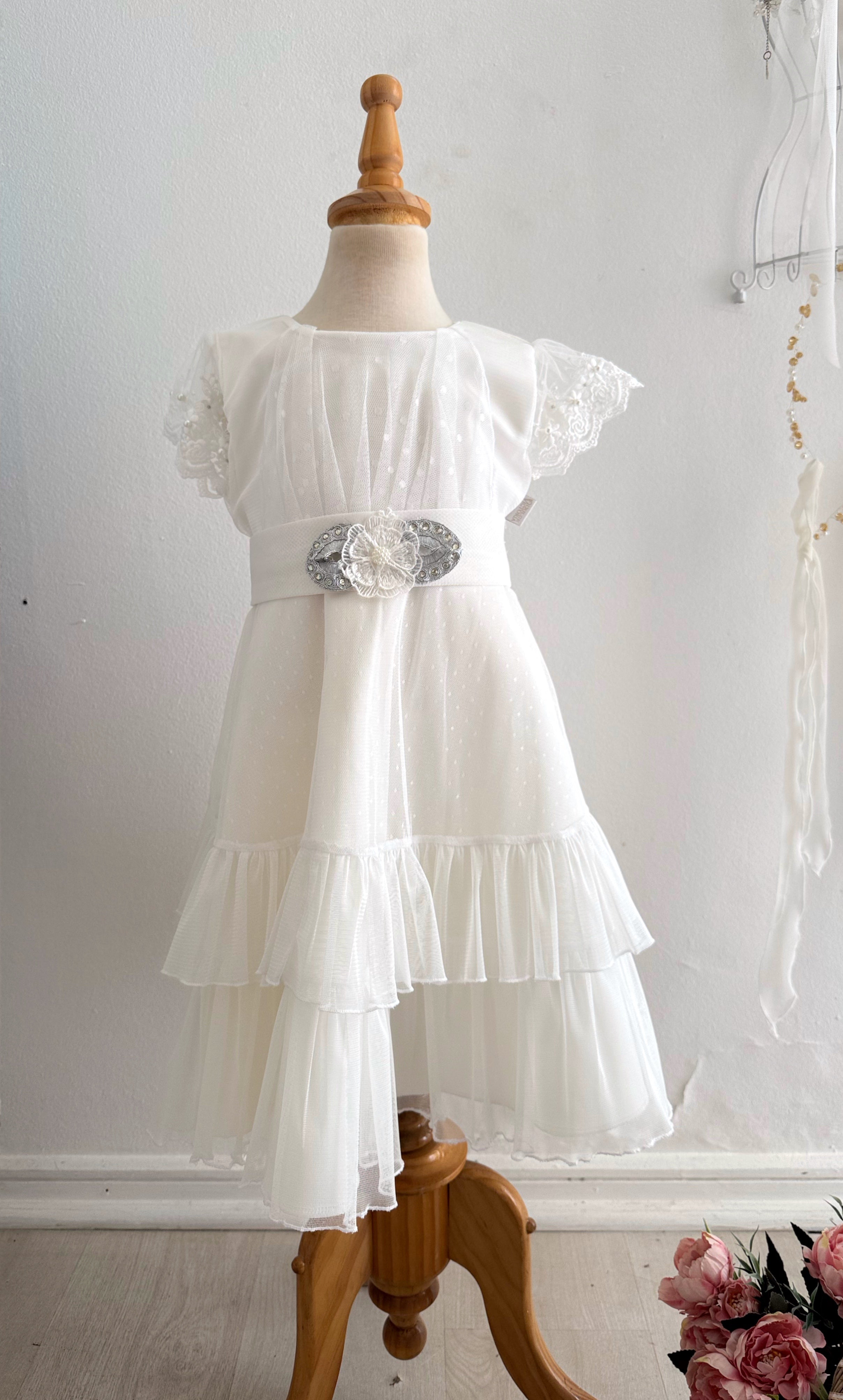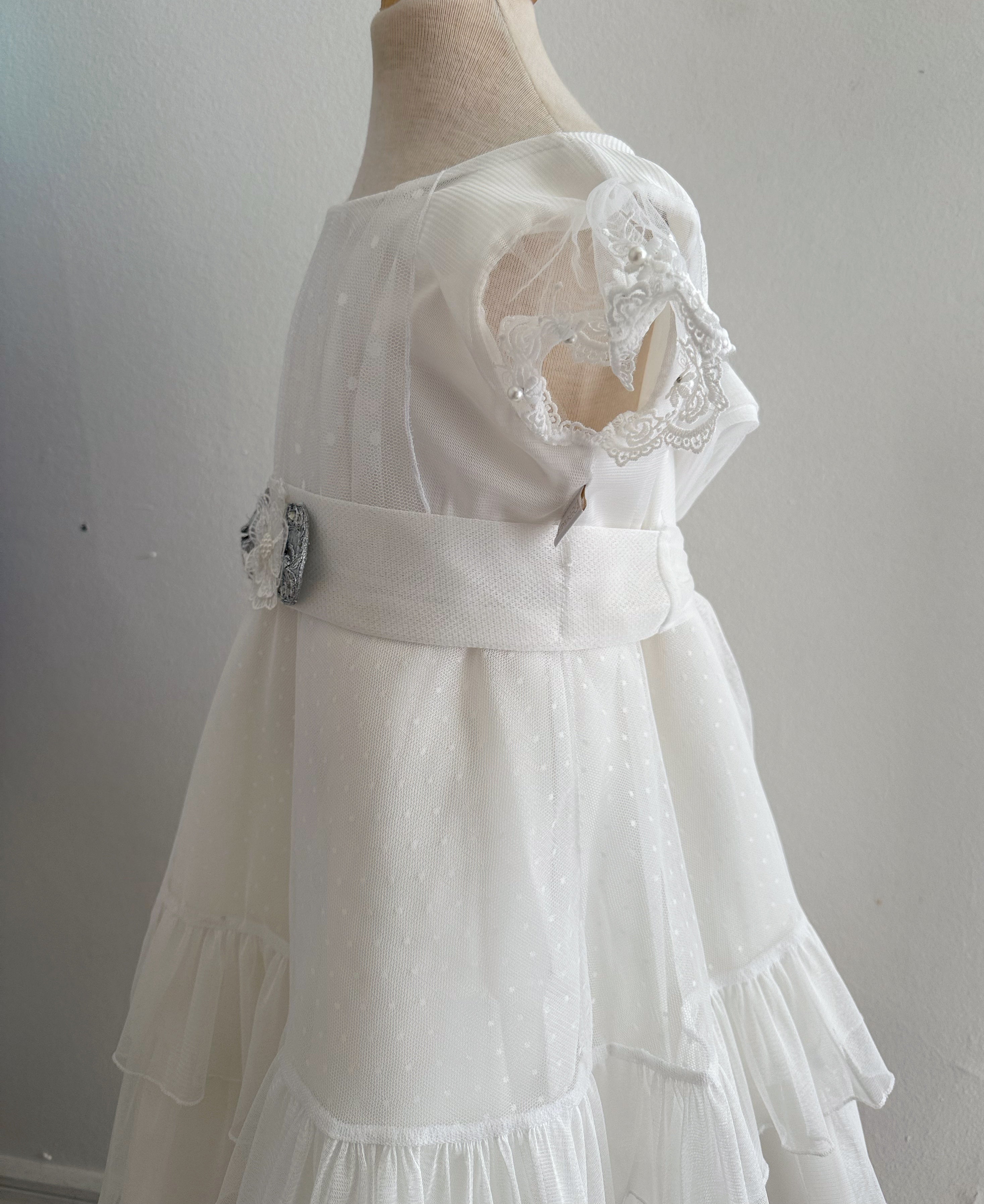 Vestido Niña Simona Blanco Plata Baby doble